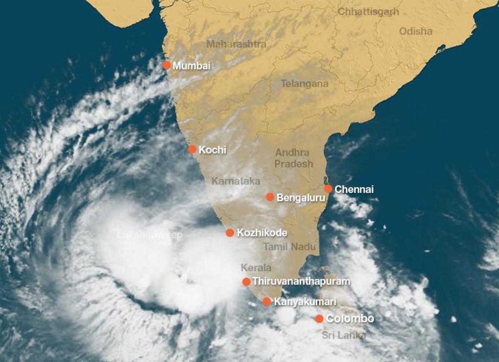 ന്യൂനമർദ്ദം ശക്തിപ്പെടുന്നു, മേഘാവൃതമായ അന്തരീക്ഷം, കേരളത്തിലേക്ക്.